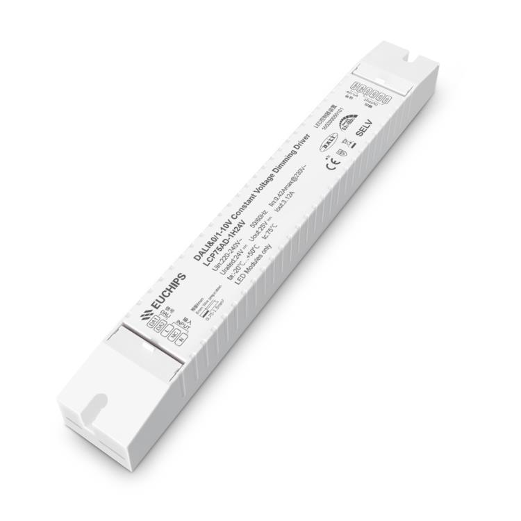 LCP75AD-1H24V是一款恒壓輸出的LED調(diào)光驅(qū)動器。這款驅(qū)動器符合DALI標(biāo)準(zhǔn)協(xié)議IEC62386。支持DALI,0/1-10V有源信號,可調(diào)電阻,PWM, Touch DIM多種調(diào)光方式。
