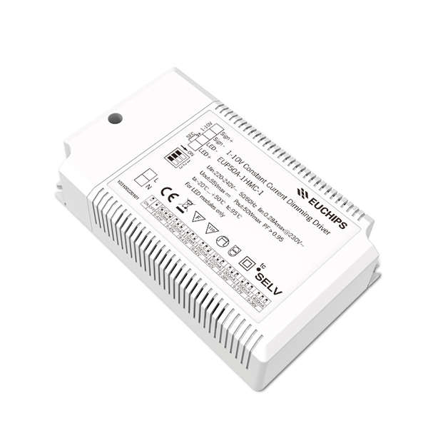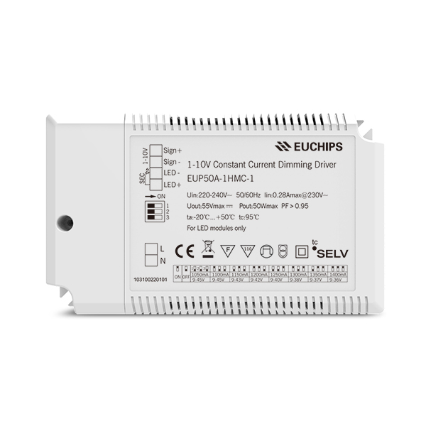 EUP50A-1HMC-1是一款可以提供1050/1100/1150/1200/1250/1300/1350/1400mA 8檔電流的恒流1-10v調(diào)光電源 。輸出電流可以通過DIP撥碼開關(guān)簡易設(shè)置,可以通過外部1-10V有源信號,可調(diào)電阻,PWM信號實現(xiàn)平滑調(diào)光;當不接外信號時,可作為常規(guī)電源使用。