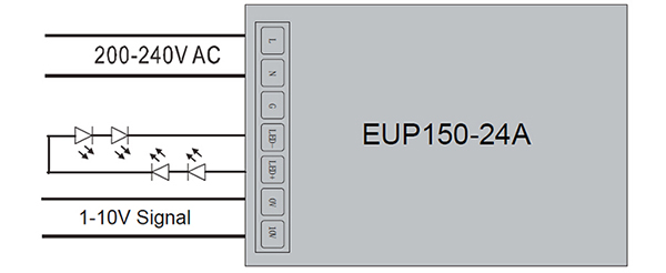 0-10v/1-10v調(diào)光電源-EUP150-24A連接示意圖: