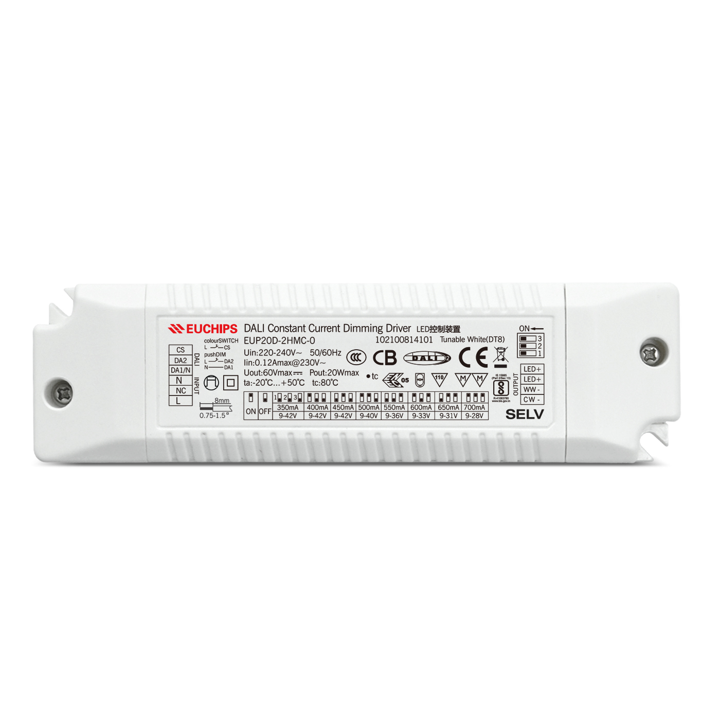 20W 350-700mA DALI恒流調(diào)光調(diào)色溫電源——EUP20D-2HMC-0產(chǎn)品詳情