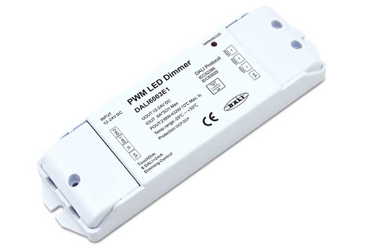 歐切斯恒壓DALI調(diào)光器(亦稱恒壓DALI解碼器)采用直流電源供電,主要用于LED恒壓燈具的調(diào)光調(diào)色控制。恒壓DALI調(diào)光器支持DALI標(biāo)準(zhǔn)協(xié)議,DALI 數(shù)字控制輸入,PWM調(diào)光輸出,采用多重保護(hù)機(jī)制保證調(diào)光器安全使用。恒壓DALI調(diào)光器(解碼器)可以接入DALI調(diào)光系統(tǒng),作為DALI分控調(diào)節(jié)恒壓燈具燈光變化,支持TouchDIM功能,此系列產(chǎn)品屬于采用手動調(diào)光方式的LED調(diào)光器。