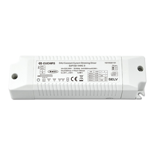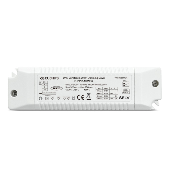 EUP15D-1HMC-0 是一款可以提供350/400/450/500mA 4檔電流的15W恒流DALI電源。輸出電流可以通過DIP撥碼開關(guān)簡(jiǎn)易設(shè)置,用DALI 主控/Touch DIM開關(guān)調(diào)光,曲線平滑、無閃爍。