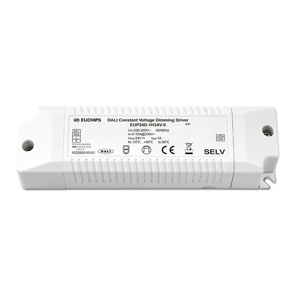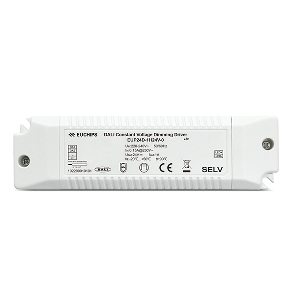 EUP24D-1H24V-0是一款可以用于室內(nèi)的24W 24VDC DALI恒壓調(diào)光電源。符合DALI標(biāo)準(zhǔn)協(xié)議IEC62386。這款驅(qū)動器可以通過連接DALI主控或Touch DIM可以實(shí)現(xiàn)平滑的調(diào)光效果。