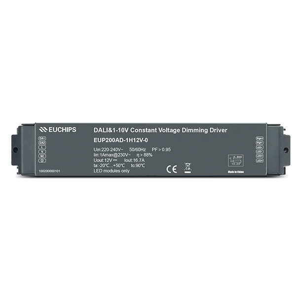 EUP200AD-1H12V-0是一款200W 12V DALI恒壓調(diào)光電源,五合一調(diào)光電源。這款調(diào)光電源符合DALI 國(guó)際標(biāo)準(zhǔn)協(xié)議IEC62386,支持DALI,1-10V有源信號(hào),可調(diào)電阻,PWM, Touch DIM多種調(diào)光方式。