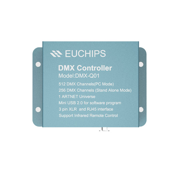 EUCHIPS? DMX-Q01 是一套用于控制建筑室內(nèi)外亮化的全彩LED、DMX 控制系統(tǒng),可以在聯(lián)機(jī)和獨(dú)立兩種模式下工作。它包含場(chǎng)景編輯程序,根據(jù)不同的需求可以通過電腦下載的程序編輯各種燈光效果。該控制系統(tǒng)實(shí)現(xiàn)R,G,B各256級(jí)灰度,共可表現(xiàn)1677萬種顏色,真正顯示全彩色。這款軟件是專門用于建筑照明的,特點(diǎn)是易于操作,可以在許多房間,多區(qū)域同步的編輯軟件。