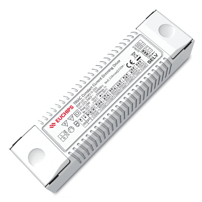 EUP10T-1HMC-0-350 是一款可以提供350/400/450/500/550/600/650/700mA, 8檔電流的LED電源,輸出電流可以通過(guò)DIP撥碼開(kāi)關(guān)簡(jiǎn)易設(shè)置,這款電源支持前沿切相和后沿切相調(diào)光器,可以與多品牌系統(tǒng)(飛利浦,ABB,路創(chuàng),西門(mén)子,西蒙,松下,邦奇等)配合使用,調(diào)光曲線平滑。