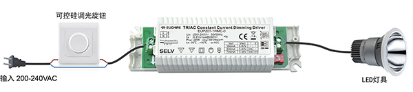 應(yīng)用方式,可控硅恒流調(diào)光電源可以與調(diào)光旋鈕結(jié)合使用,如下圖所示: