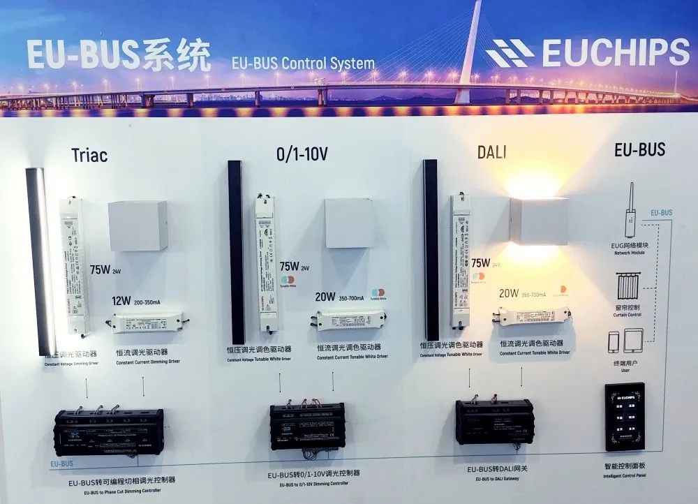 歐切斯本次展廳設(shè)計(jì)特別注重觀眾體驗(yàn),攜最新產(chǎn)品、新技術(shù)以及智能調(diào)光整體解決方案重磅亮相。比如經(jīng)典的國標(biāo)調(diào)光和控制系統(tǒng)的產(chǎn)品,主要針對市場上主流的LED燈具,如筒射燈、燈帶、線性燈、面板燈、磁吸燈等照明產(chǎn)品,從調(diào)光信號(hào)(DALI、DMX、0/1-10V和可控硅)、恒壓恒流、調(diào)色溫、藍(lán)牙、Zigbee、非調(diào)光等維度不同輸出功率的產(chǎn)品,能完美解決實(shí)際應(yīng)用過程中的啟亮點(diǎn)高,低端閃爍,調(diào)光范圍窄等不兼容的問題。