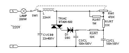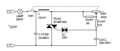 當環(huán)境亮度變化時,光敏電阻的CDS電阻值也會相應地改變,一旦出現(xiàn)這種變化值,可控硅的導通角也會隨之改變,這樣就可讓燈泡亮度向相反方向改變。RW2用于調(diào)整光敏電阻的靈敏度。