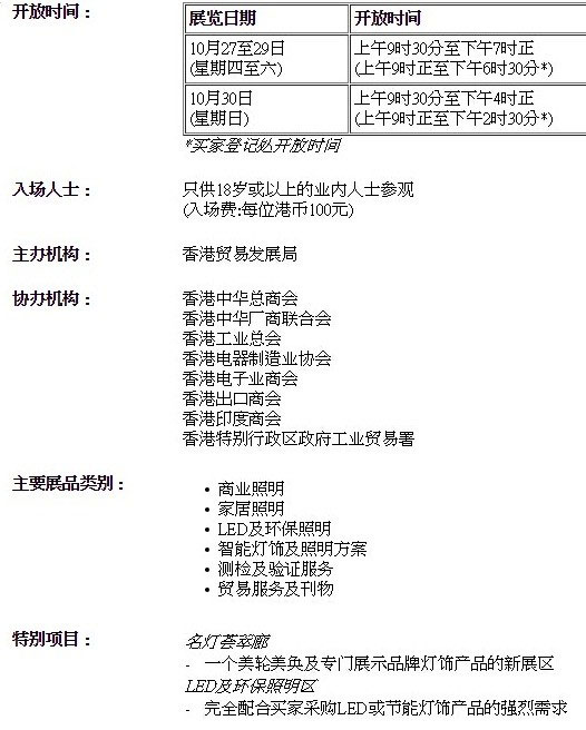 預計2016年展覽面積達69,633平方米,刷新紀錄。燈飾展劃分為多個主題展區(qū),凸顯參展商的強項和專長,其中商業(yè)照明丶家居照明丶LED及環(huán)保照明丶智能燈飾及照明方案丶測檢及驗證服務(wù)丶以及貿(mào)易服務(wù)及刊物等展區(qū),與匯聚高檔品牌燈飾的名燈薈萃廊互相輝映,姿采紛呈。