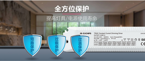 這款可控硅調(diào)光電源支持短路保護(hù),過(guò)載保護(hù)和過(guò)溫保護(hù),可全方位保護(hù)可以提高燈具和電源的使用壽命。短路保護(hù):關(guān)斷輸出,移除故障后自恢復(fù)。過(guò)載保護(hù):超過(guò)輸出電壓時(shí), 輸出電流下降, 減輕負(fù)載自動(dòng)恢復(fù)。過(guò)溫保護(hù):關(guān)閉輸出,溫度正常后自動(dòng)恢復(fù)。