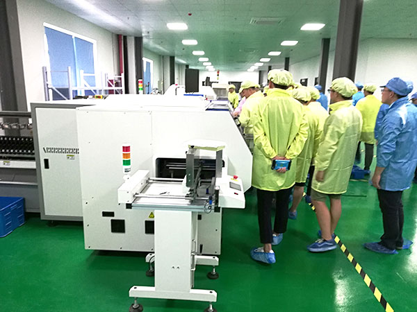 28日一早,大家聚集在一起。在我們的技術(shù)人員帶領(lǐng)下,穿戴好防靜電裝備之后去生產(chǎn)車間參觀和考察產(chǎn)品的制造工藝和生產(chǎn)流程。
