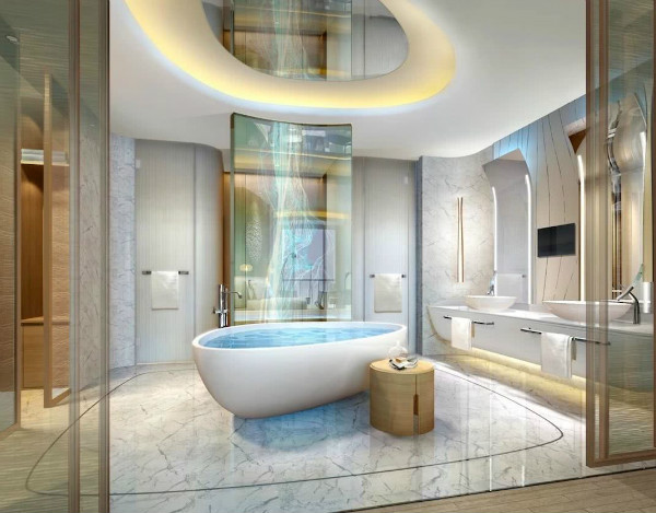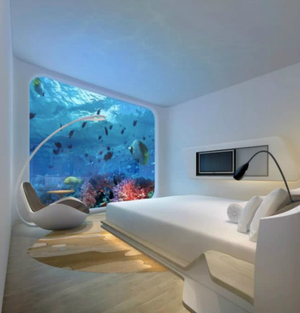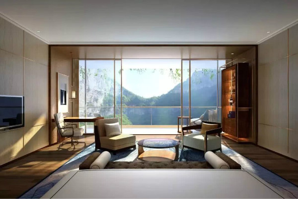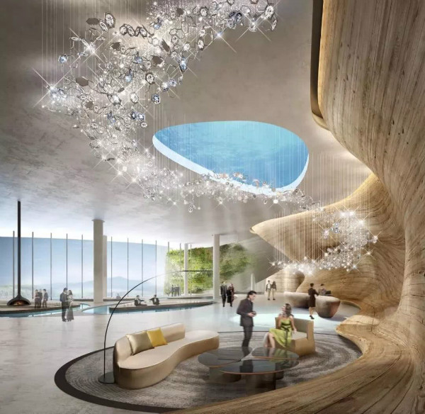 酒店將有三百多間客房,均位于地平線以下,每間客房都提供觀景露臺,放眼望去就是瀑布美景。然而最令人期待的,或許就是位于水下兩層的水底客房。透過玻璃窗就能看到魚兒從你眼前游過,不用去迪拜或者三亞,上海也有可以看海底世界的房間了!