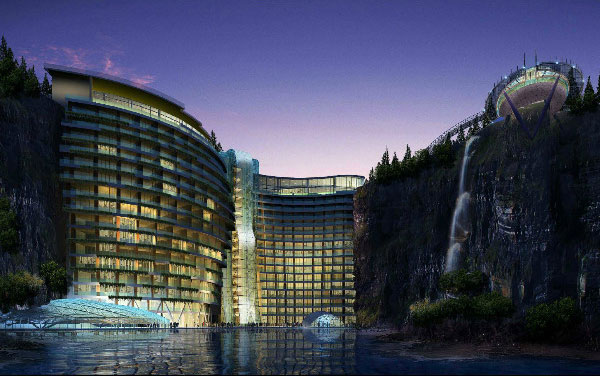 這是一個極具挑戰(zhàn)性的創(chuàng)新項目,由阿特金斯團隊,(迪拜帆船酒店設(shè)計團隊)擔(dān)任建筑設(shè)計。酒店的前身是一座老舊的采石場,如今重?fù)Q新貌變成高聳在奢華酒店。整棟建筑預(yù)計建造19層,有三百多間客房。有幾層處在水下打造成水族館餐廳和套房,只有兩層高于懸崖頂部,全與周圍的自然地貌融為一體。