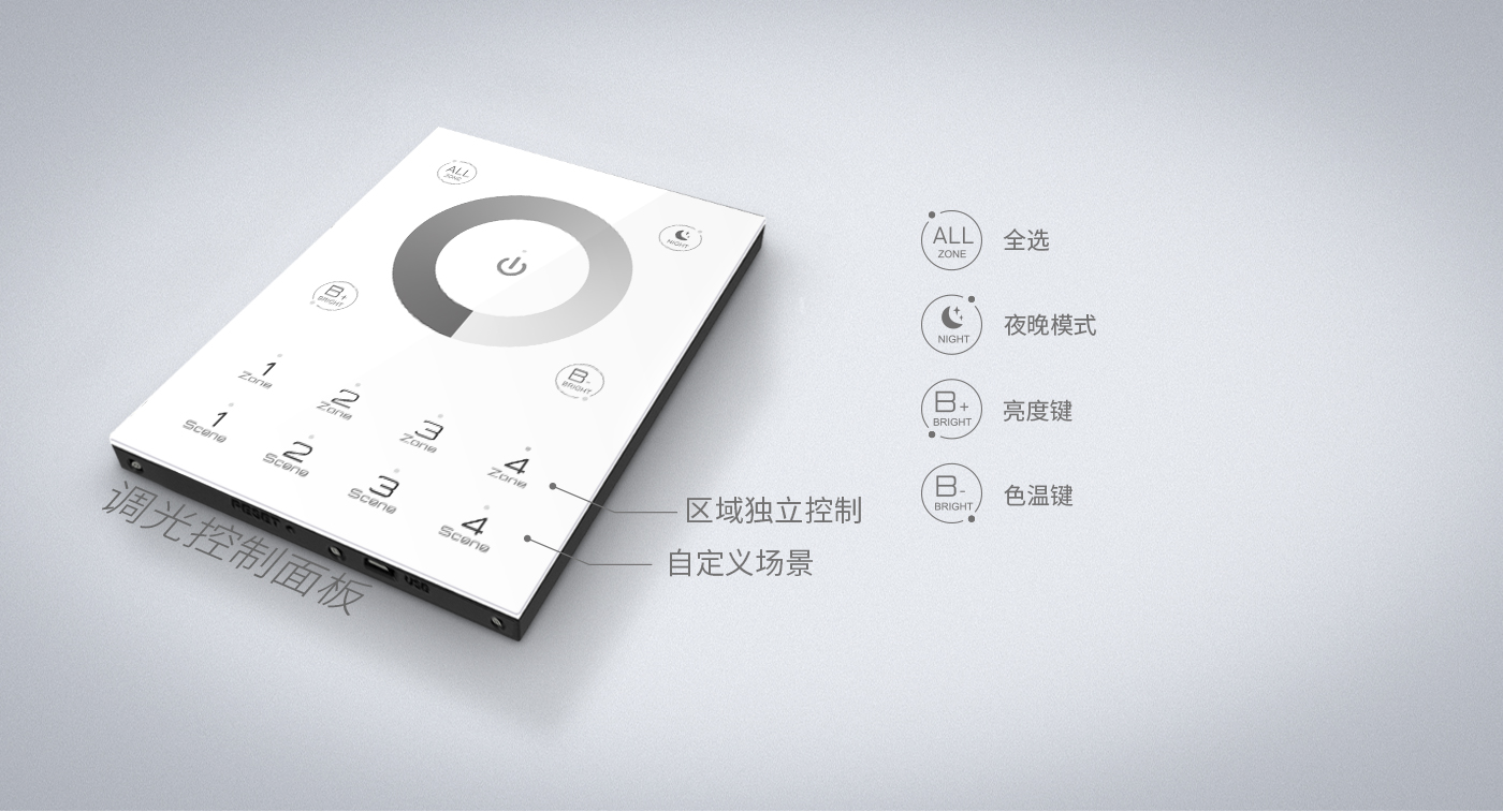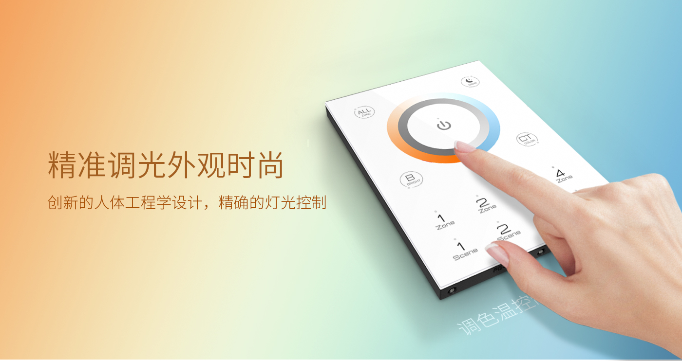 調(diào)光控制器面板界面簡(jiǎn)介清晰,控制精細(xì)。高靈敏度玻璃觸摸按鍵及調(diào)節(jié)滑環(huán),使用功能一目了然,更方便操作控制。
