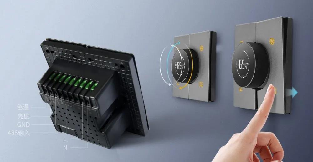 歐切斯0-10V調(diào)光調(diào)色溫旋鈕面板界面功能齊全,操作便捷,輕松調(diào)節(jié)燈光亮度和色溫,場景切換更加精準(zhǔn)且人性化。具有斷電記憶功能,斷電后再次開機(jī),即可恢復(fù)到上一個(gè)工作狀態(tài)。支持RS485通訊協(xié)議,可通過連接第三方網(wǎng)關(guān),實(shí)現(xiàn)對場景調(diào)用等功能。