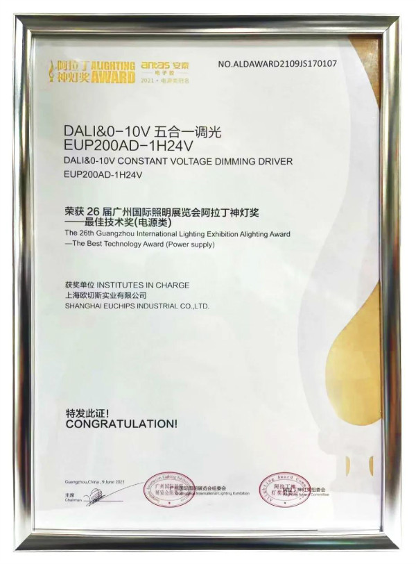此次2021光亞展期間,第九屆阿拉丁神燈獎頒獎典禮也在廣州琶洲中國進出口交易會展館隆重舉行。歐切斯榮幸受邀以光之名,赴榮耀之約與業(yè)界大咖、學界專家、精英企業(yè)代表齊聚一堂。照明行業(yè)電源類唯二的【最佳技術獎】,其中之一被歐切斯摘得,這是對歐切斯品牌與產品實力的認可與肯定!作為國內LED調光電源及控制系統(tǒng)的供應商和智能照明方案服務商,歐切斯專注調光16年,產品研發(fā)立足“高兼容,無頻閃”,力求精準控制每一盞燈,讓未來更加節(jié)能與便捷!
