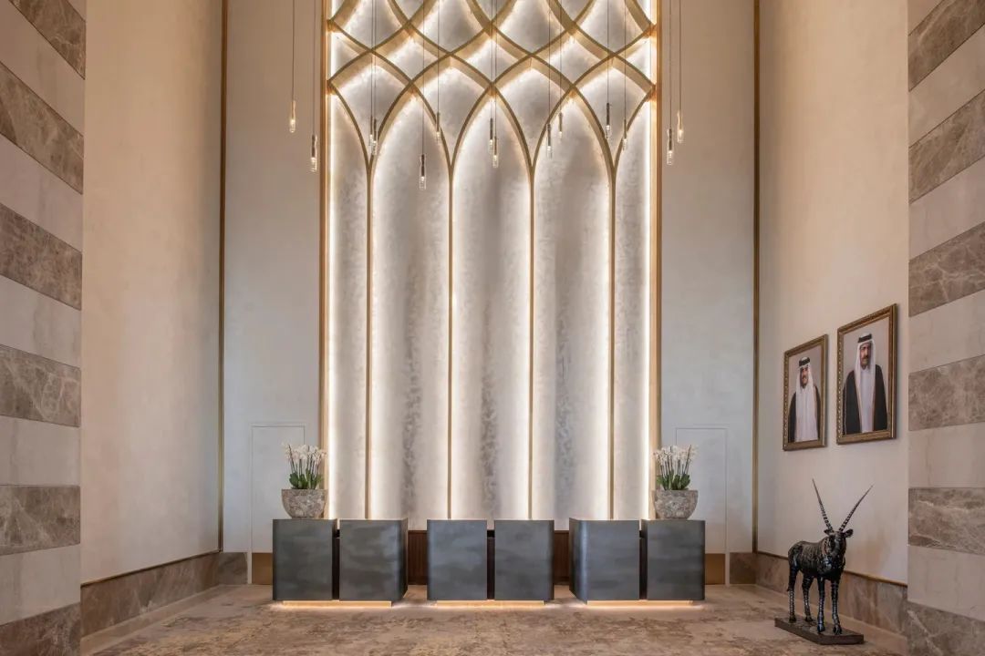 進入酒店,白色和米棕色為主的色調(diào)設計,隨處可見的阿拉伯風格的石柱,直立在大堂中。通過歐切斯調(diào)光電源,整體燈光明暗有致,營造出一種追求品質(zhì)與不事張揚的高級豪華感。