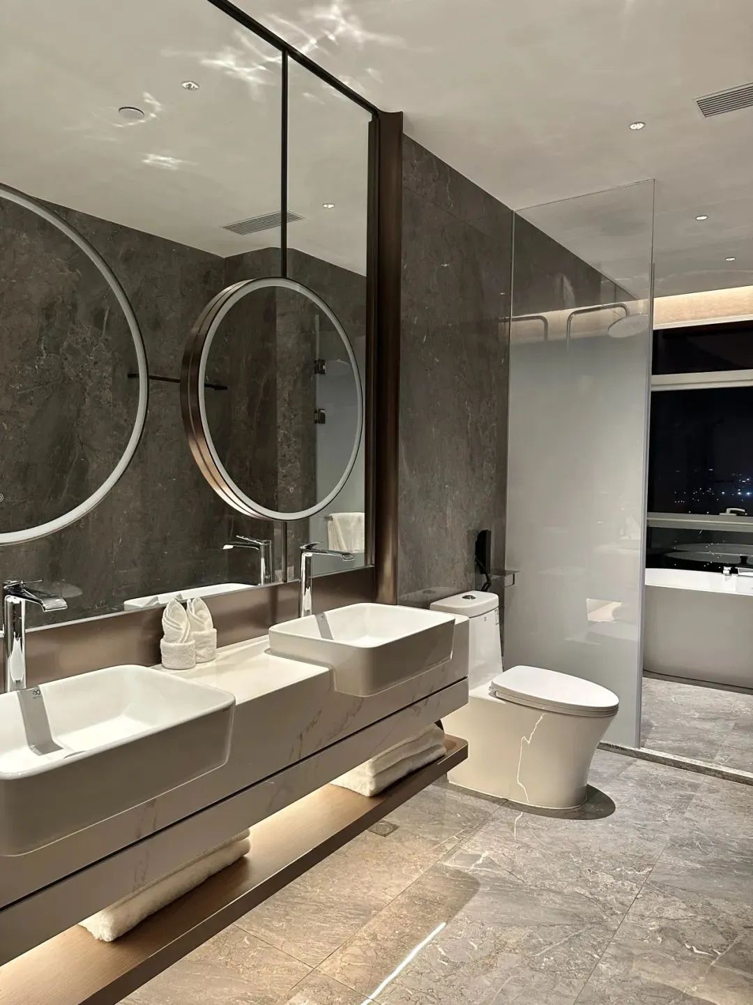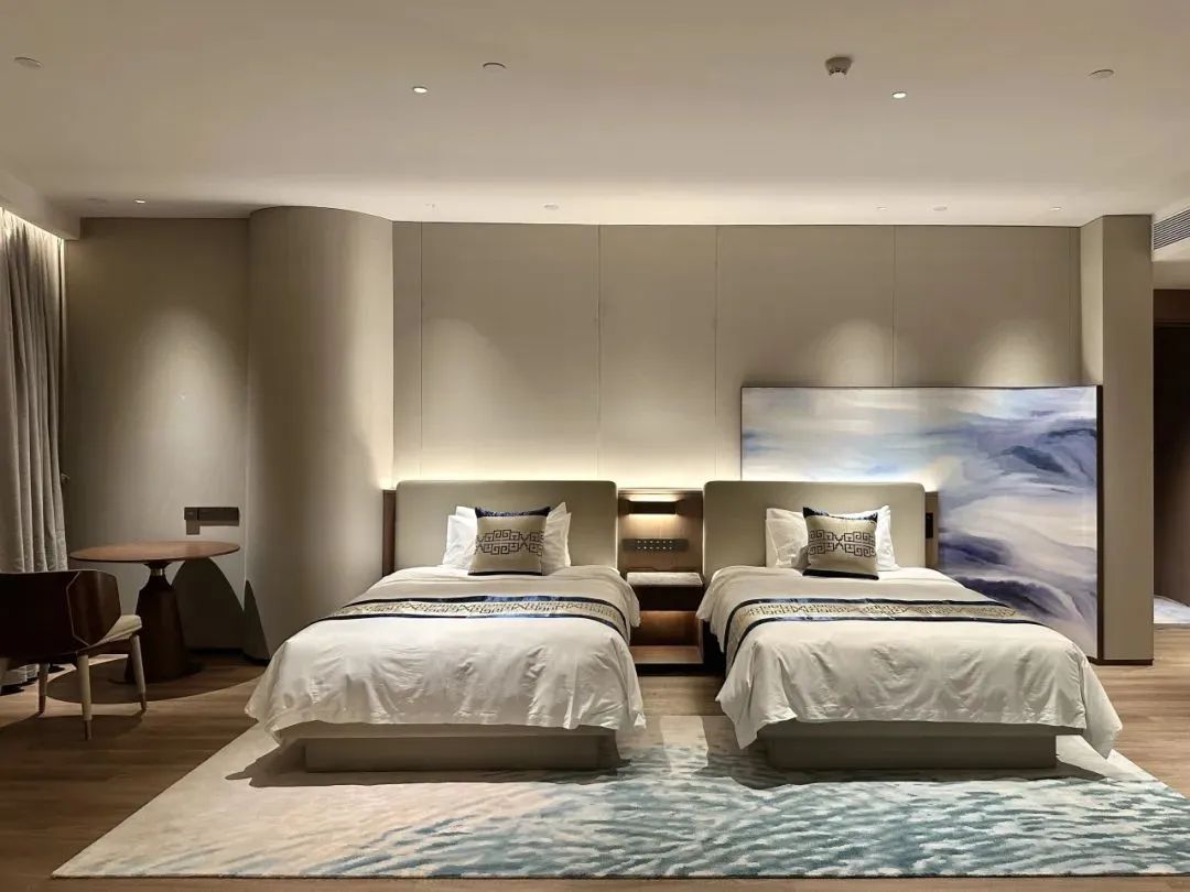 走進(jìn)客房,仿佛步入了一個(gè)靜謐的時(shí)光走廊。墻面及地面采用大面積石材裝飾,既耐磨易清潔,又增添了些許文化氣息。房間內(nèi),各項(xiàng)現(xiàn)代設(shè)施一應(yīng)俱全,而歐切斯可控硅智能調(diào)光系統(tǒng)根據(jù)空間布局與光線(xiàn)需求,提供個(gè)性化解決方案,讓居住體驗(yàn)更加舒適愜意。隨著外部光源的變化,室內(nèi)的裝飾肌理在燈光的映襯下變得更加豐富細(xì)膩,讓人仿佛置身于一個(gè)夢(mèng)幻般的世界。